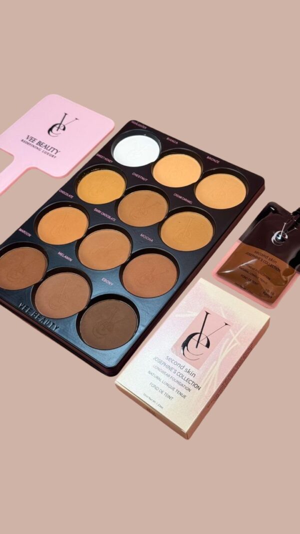 FRIENDS REUNION PALETTE 12IN1 is a compact makeup palette that contains 12 different powder shades in one case, comes with a Free hand mirror for easy application and 35ml second skin foundation.