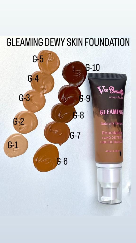 VEE Beauty Gleaming Foundation is a liquid foundation designed to give your skin a glowy, radiant finish rather than a flat matte look. Shades ranging from G01–G10 .